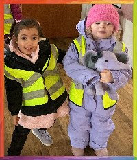 SIMOA in the community- While out on our walks in the community we are bringing SIMOA along with us , Our children participate in completing our risk assessments, ensure we all have our vests on and do head counts. This gives children a key role in being responsible for their own safety as well as their peers.